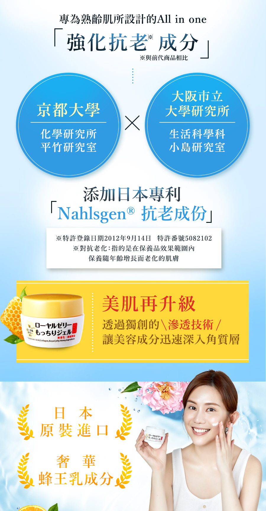 讓青春成為最好的禮物,累積銷售550萬瓶,一瓶抵五瓶,蜂王乳成份,出雲溫泉水,40種美容成份,三大膠囊化成份 蜂王乳奢華保養,預約滋潤彈力肌,30天鑑賞期,最優惠880元 加入購物車