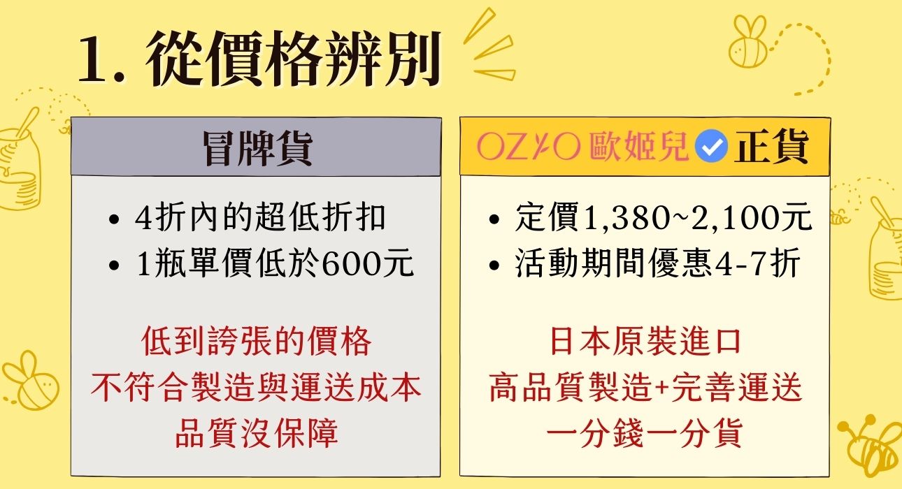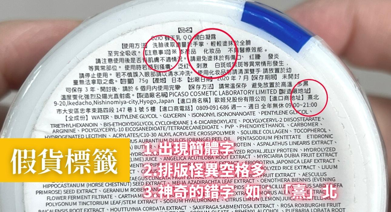 2.標籤:正版排版整齊、資訊正確清晰;假貨排版怪異、出現簡體字與錯字。