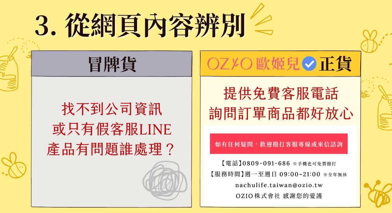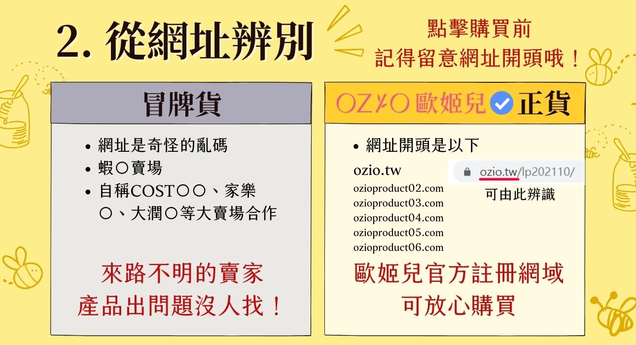 然而我們的心意卻被不肖人士所利用,近日在社群網站、電商賣場等處陸續出現仿冒歐姬兒的網頁,其並非歐姬兒官方通路,也絕非歐姬兒製造的產品,本公司不會對這些網頁所顯示的內容作出任何保證或承擔任何責任。